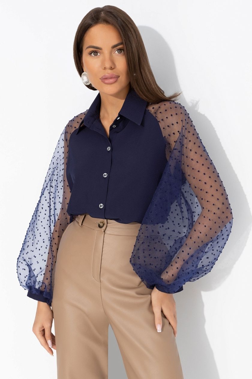 Блуза синяя с объёмными рукавами из органзы