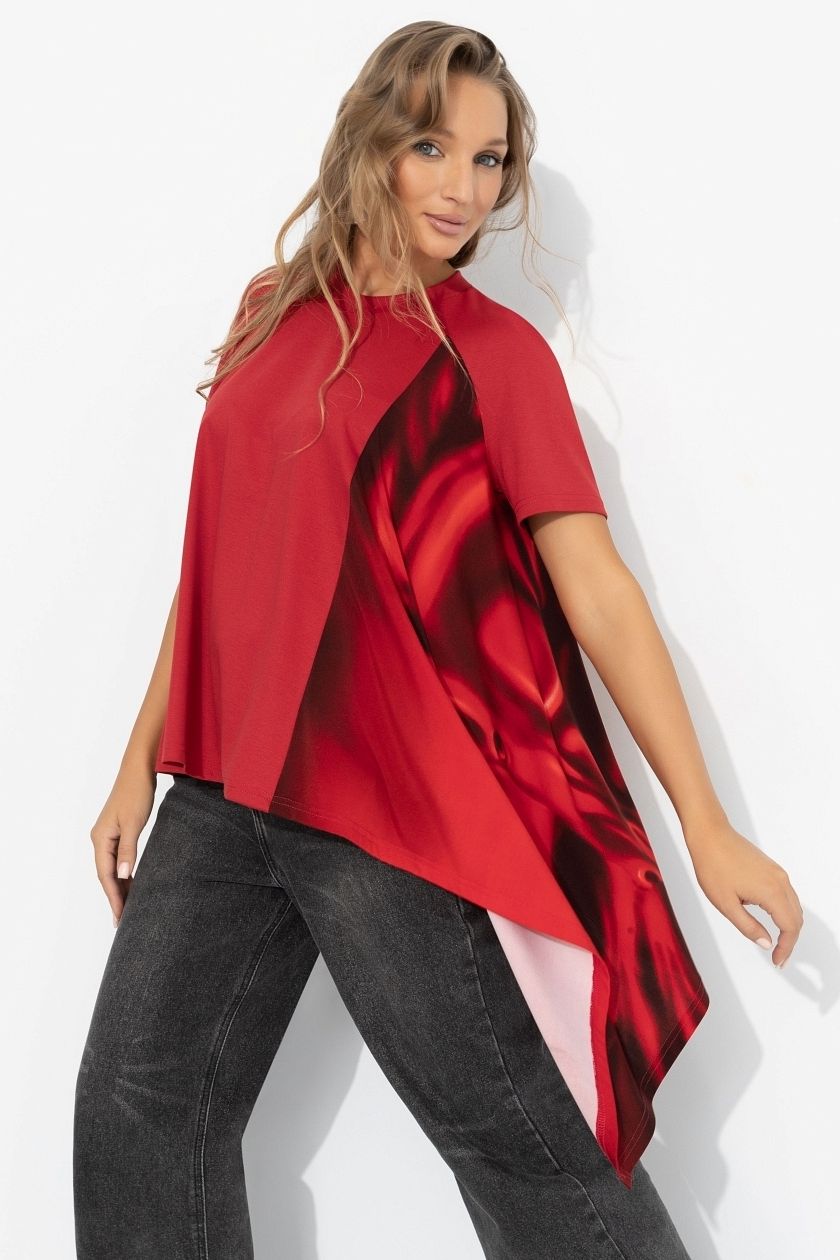 Футболка красная асимметричного кроя