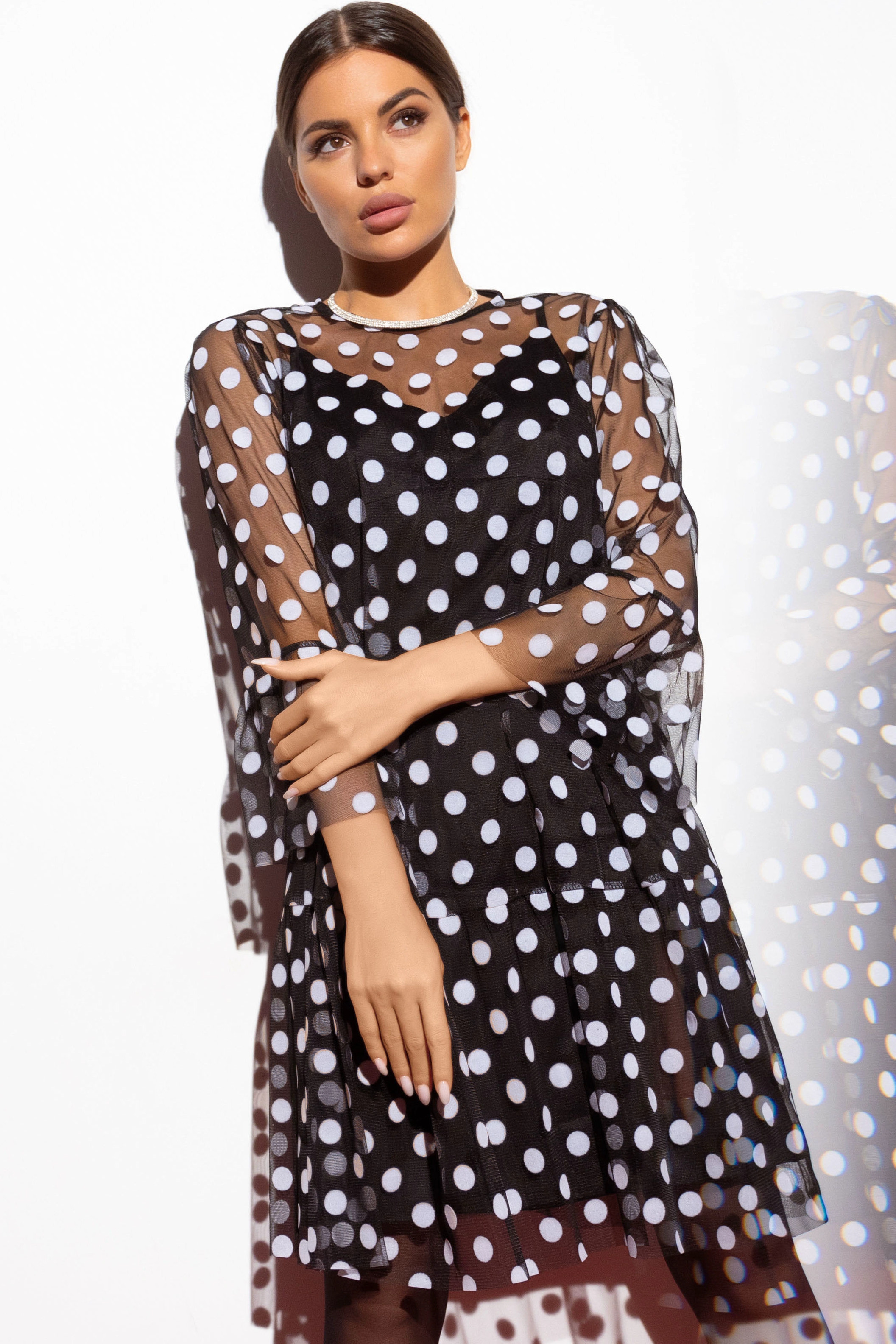 Комбинированное платье в горох