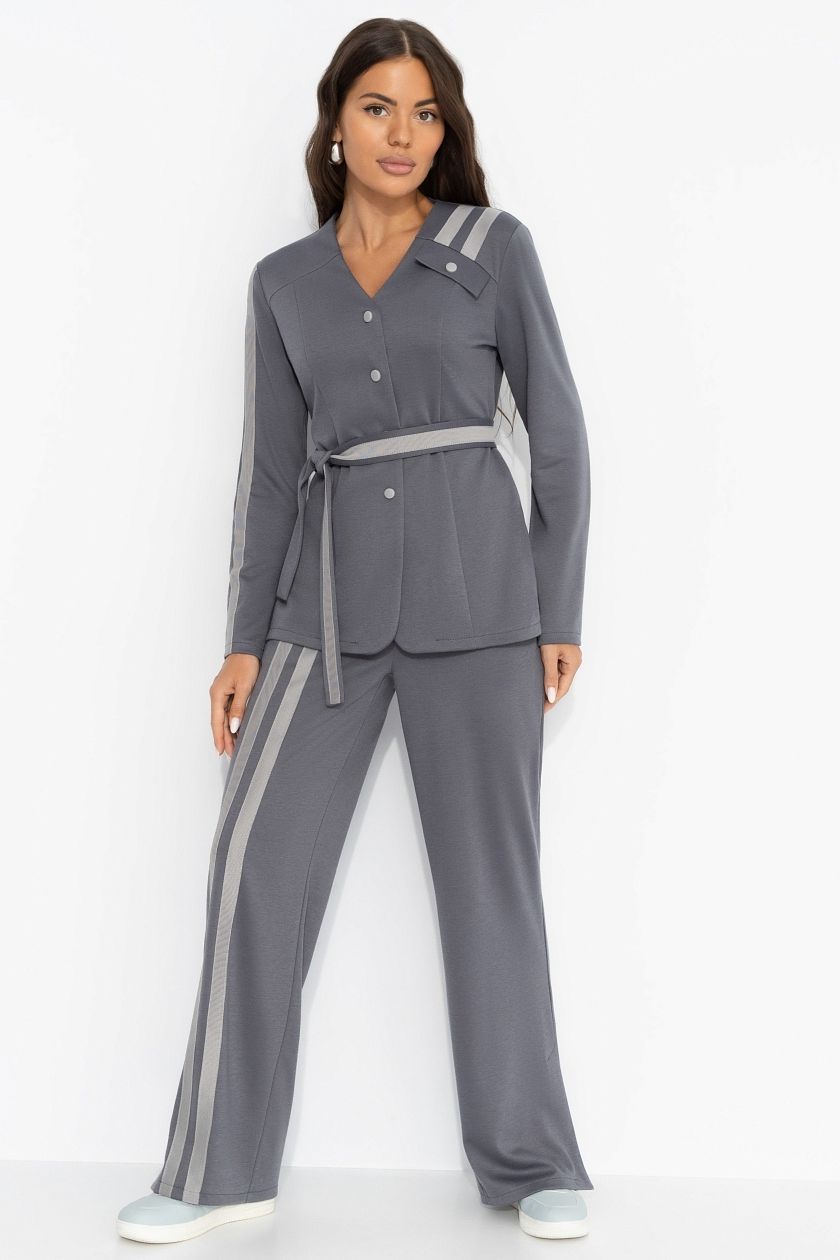 Костюм серый брючный с лампасами