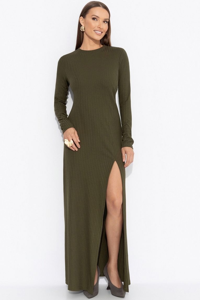 Платье длинное зелёное из трикотажа-лапша