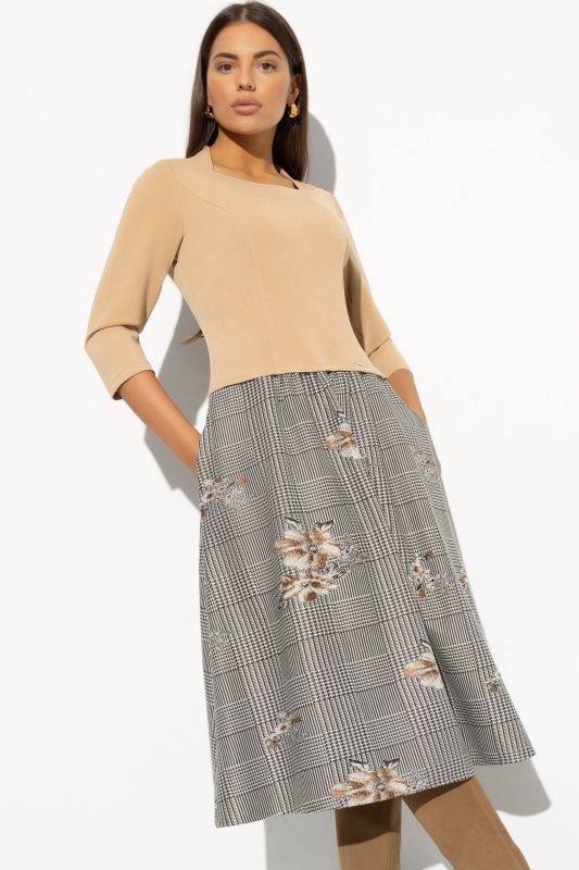 Платье трикотажное комбинированное с карманами