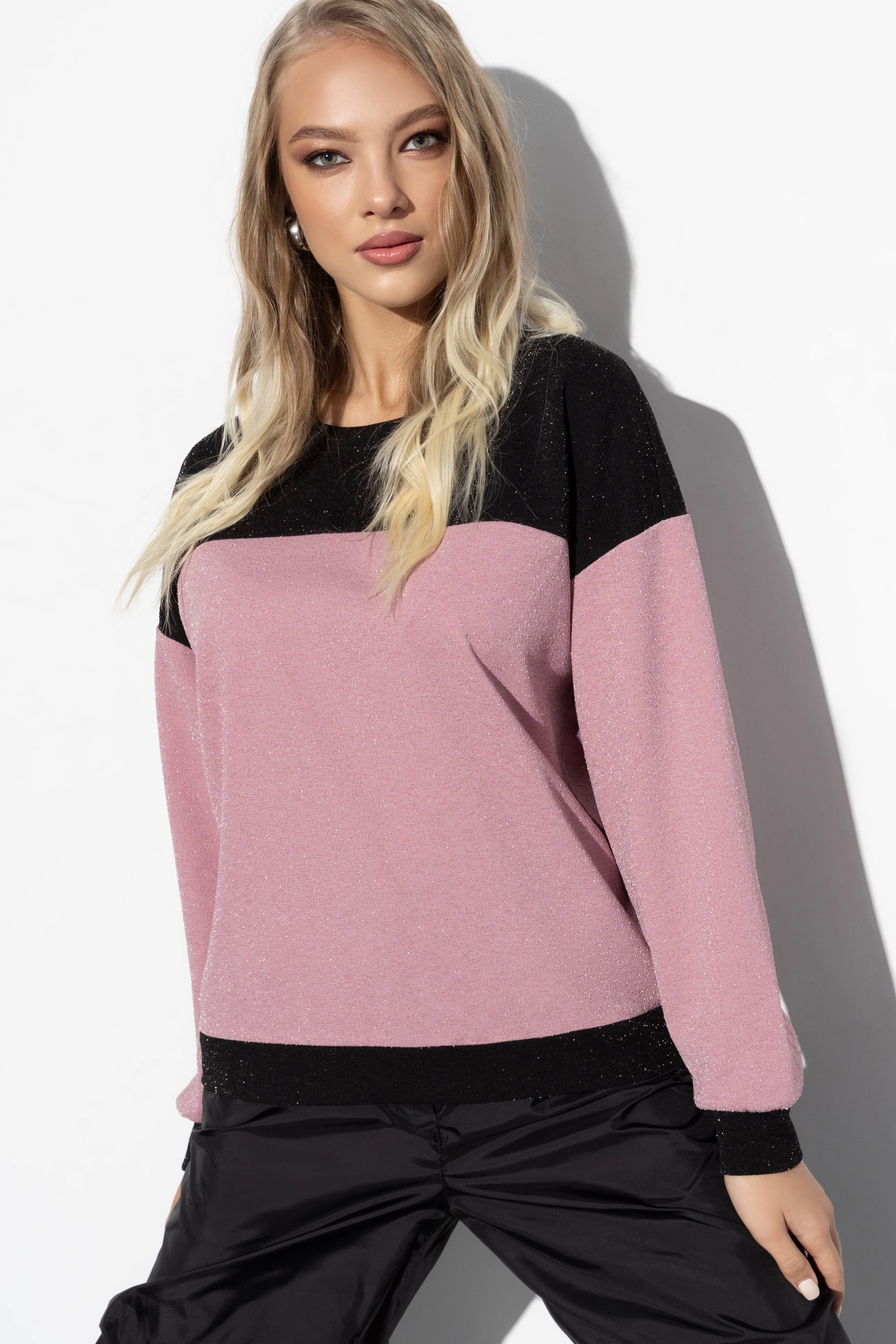 Розовый женский свитшот от компании Charutti. Модель свободного силуэта, выполнена из трикотажного полотна с люрексом. Округлый вырез горловины. Рукав длинный, втачной. Линия плеча спущенная. Низ ровный, на манжете. Прекрасное решение для создания стильного образа.