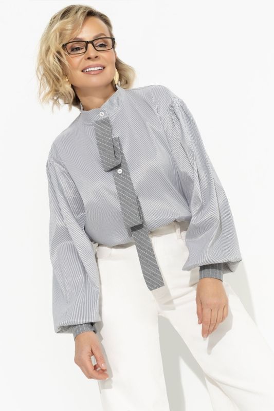 Рубашка серая с несъёмным драпирующимся галстуком