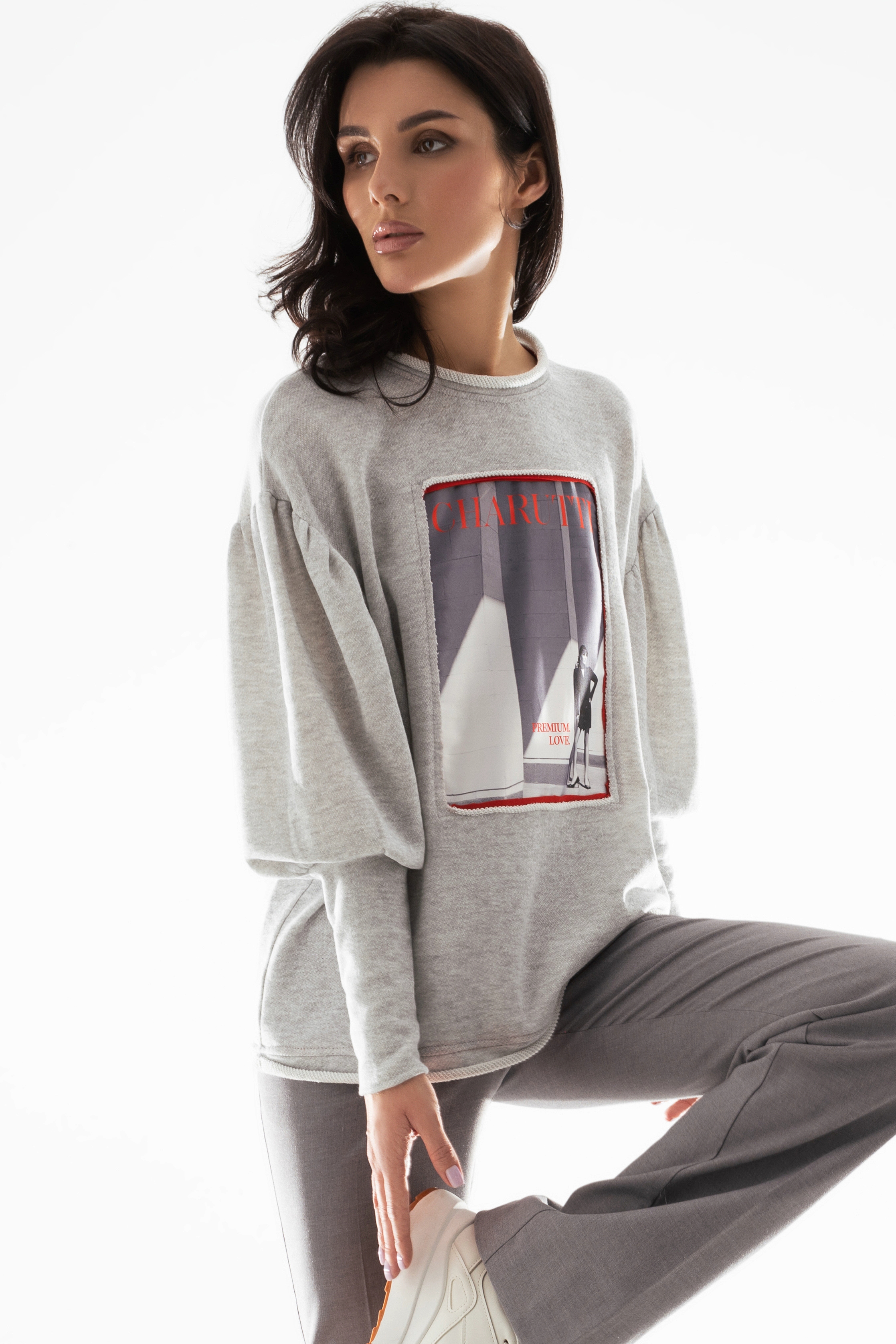 Джемпер трикотажный чёрно-серый с принтом гусиная лапка