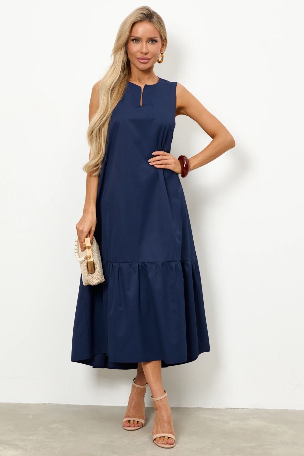 Платье без рукавов тёмно-синего цвета