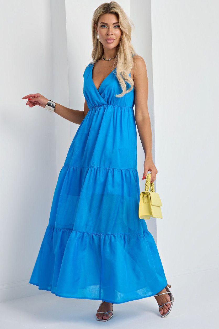 Платье длинное голубое на запах