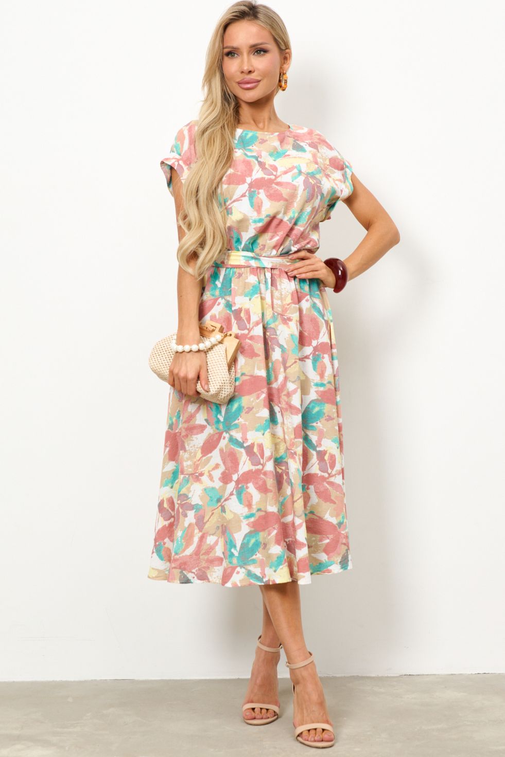 Платье миди разноцветное из хлопка