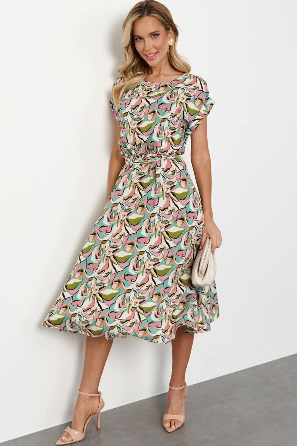 Платье миди разноцветное из хлопка
