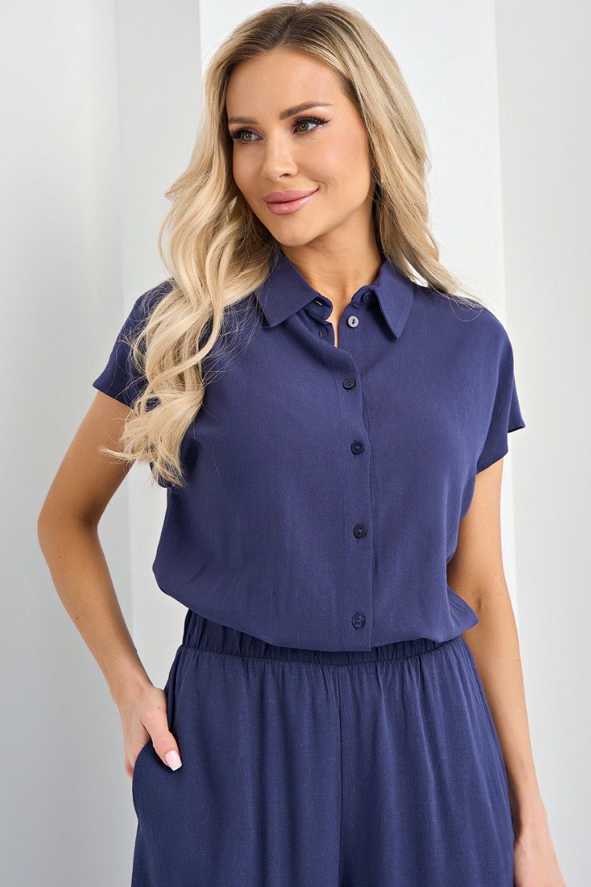 Рубашка льняная тёмно-синего цвета