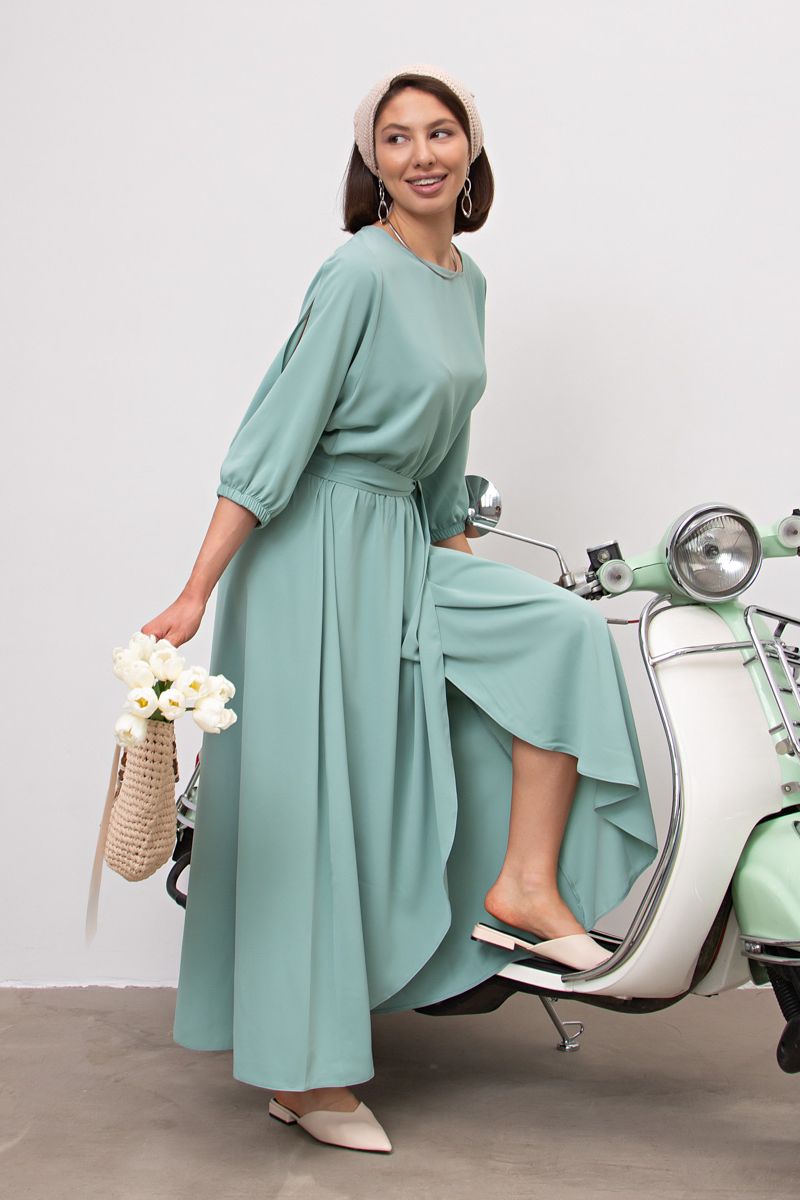Платье праздничное макси оливкового цвета от бренда LT Collection свободного силуэта с акцентными рукавами, выполнено из плательного полотна "Прада". Подойдет для разных типов фигур, скроет нюансы при необходимости. Горловина — лодочка. В комплекте тканевый пояс. Платье вечернее длинное без застёжки легко надевать и снимать. Будет прекрасным решением на торжество, свадьбу для подружек невесты, выпускной, если дополнить его подходящей обувью и аксессуарами.
