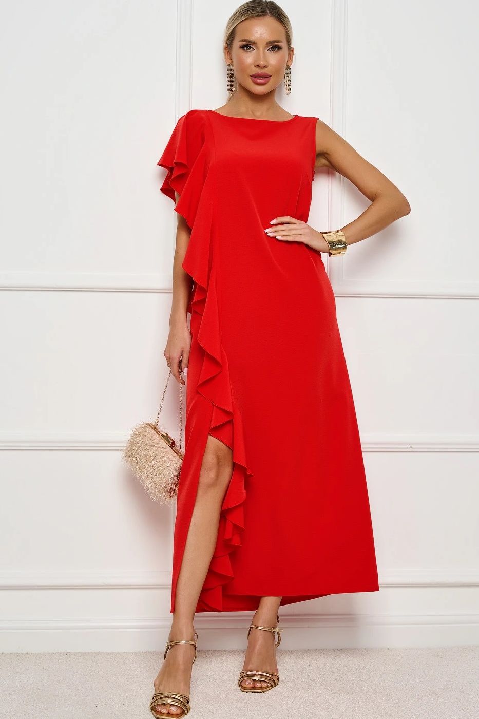 Платье длинное красное с воланом