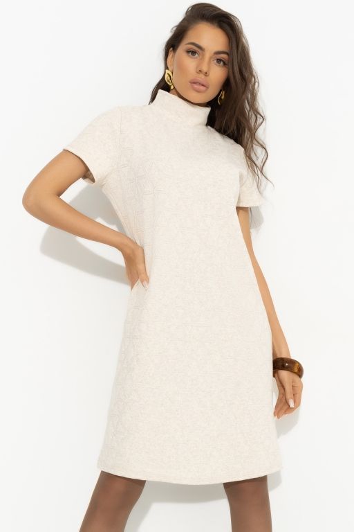 Платье бежевое из плотного трикотажа 44 размера