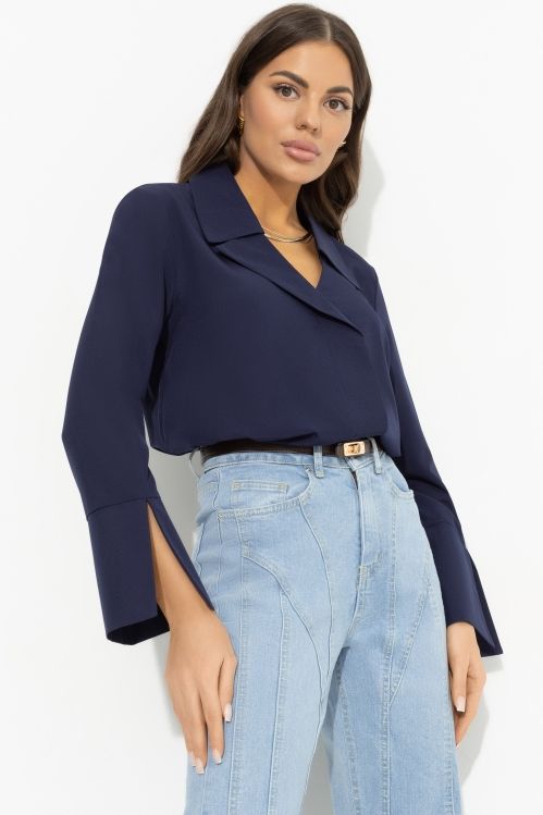 Блуза синяя с разрезами на рукавах