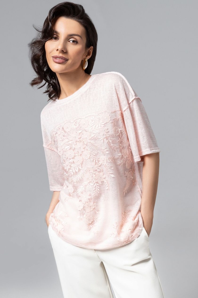 Футболка трикотажная розовая с вышивкой