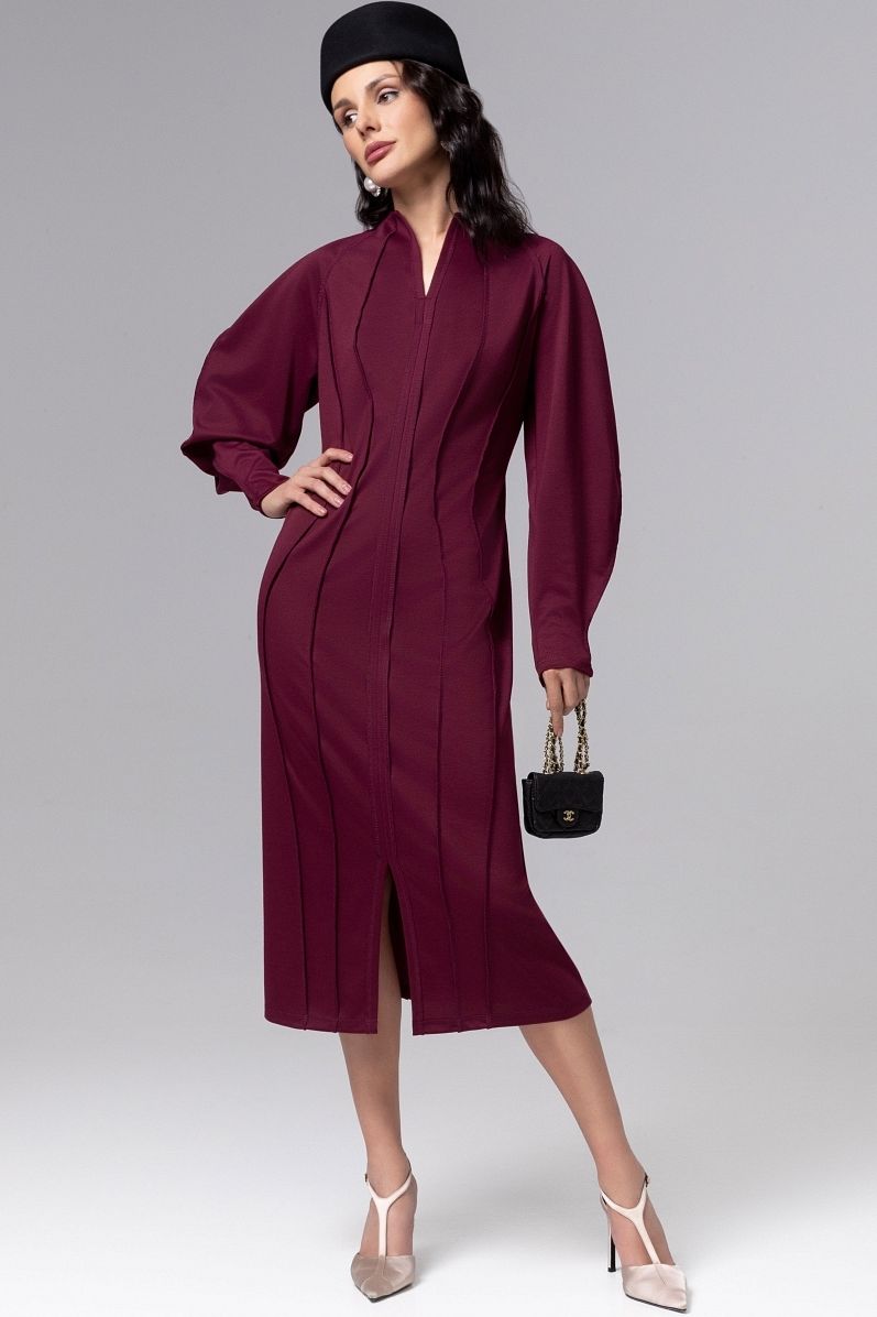 Платье-футляр бордовое со швами наружу