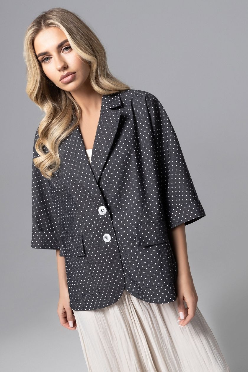 Жакет из джинсы чёрный в горошек