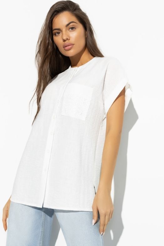 Блузка белая со вставкой из кружева по спинке