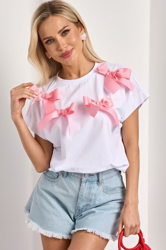 Блузка лёгкая бежево-синего цвета с графическим принтом