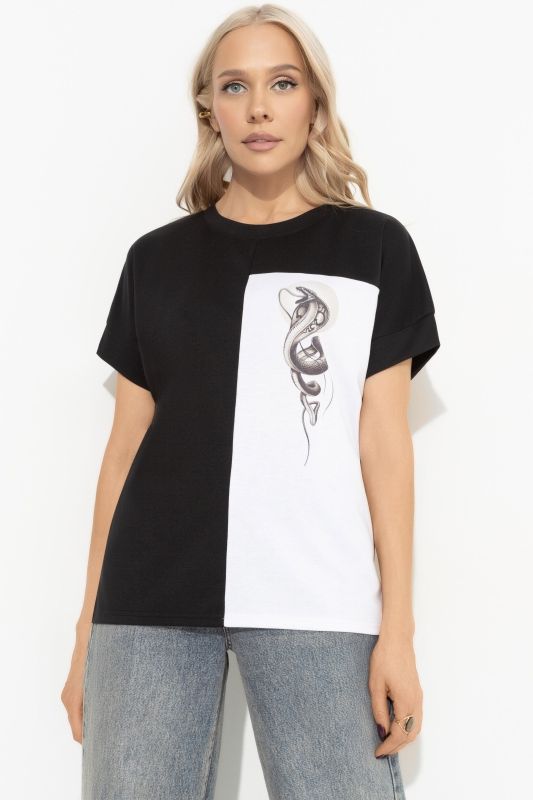 Футболка трикотажная чёрного цвета с принтом