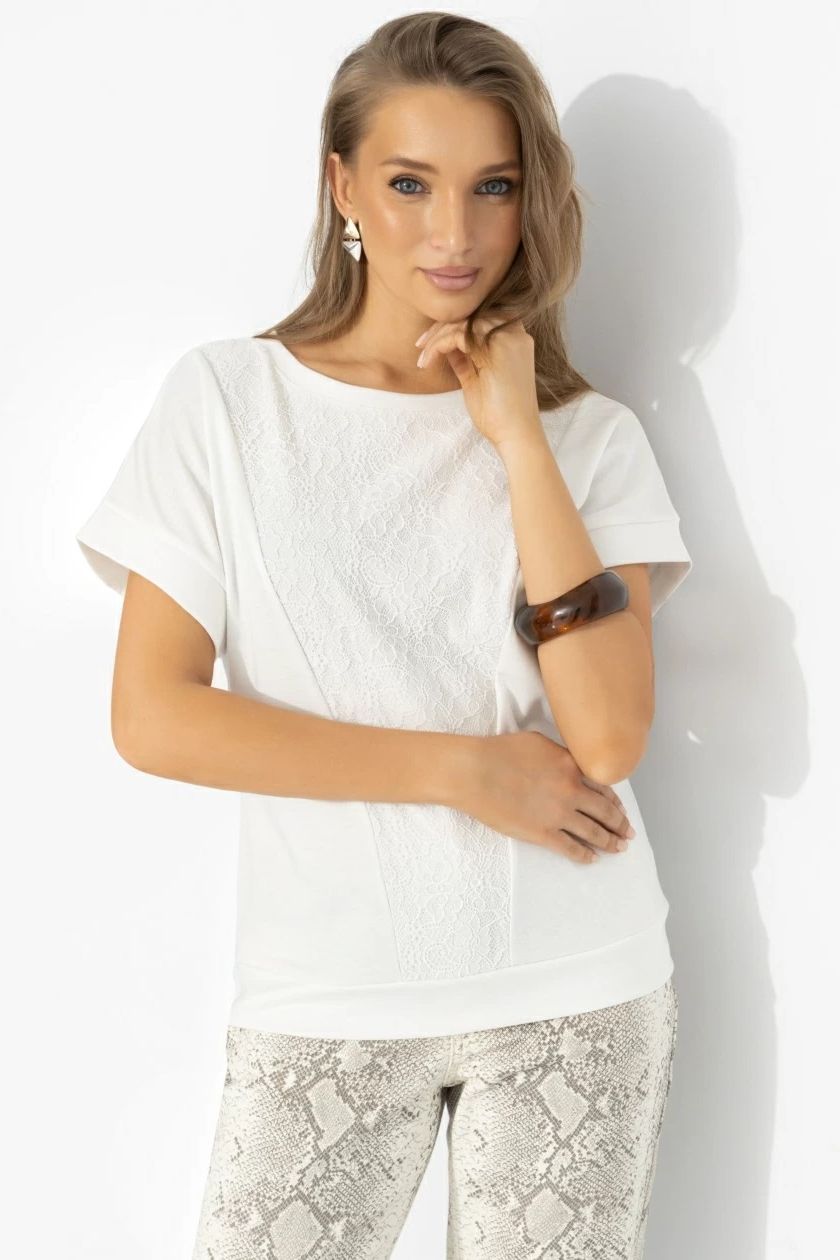 Футболка комбинированная молочного цвета от компании Charutti. Мягкий трикотаж расслабленно ложится по фигуре, свободный крой с приспущенной линией плеч создает эффект беззаботного шика. Контрастная кружевная вставка по центру вытягивает силуэт и добавляет деликатную чувственность. Носи ее с джинсами, брюками, юбками – и чувствуй себя по-новому каждый день.